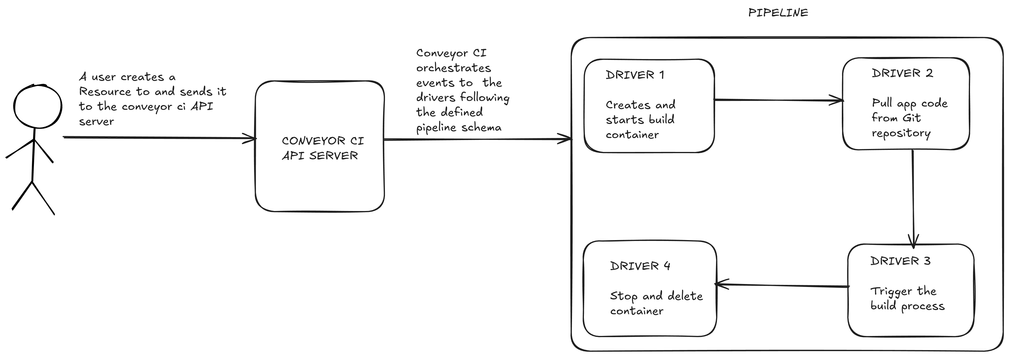 Conveyor CI provides intutive primitives that we can use to accomplish this and these are, Resources, Drivers and Pipelines.
